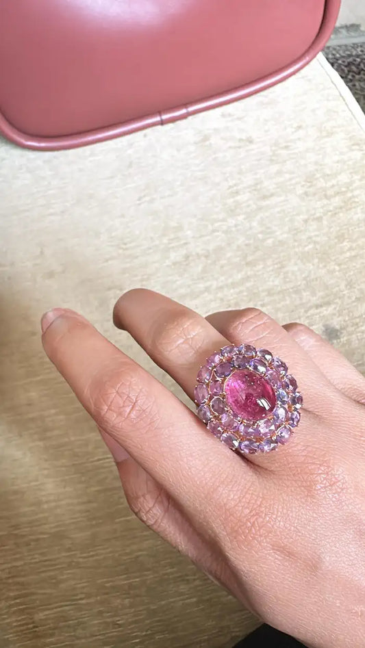 18K Gold, 8.13 carats, Tourmaline, Multi Sapphire & Diamond Cocktail Ring