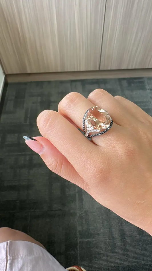 18k Rose Gold Black Diamond Wedding Ring - Natural Morganite & Diamond Wedding Ring