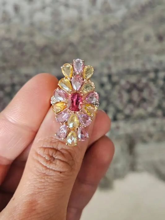 1.04 Ct. Tourmaline Gemstone Gold Ring - Natural Multi Sapphire & Diamond Cocktail Ring - 18k Rose Gold Diamond Ring