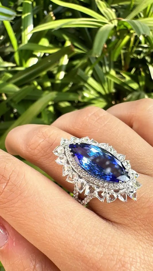7.92 Ct. Natural Tanzanite Gemstone Statement Ring - 18k White Gold Diamond Engagement Ring