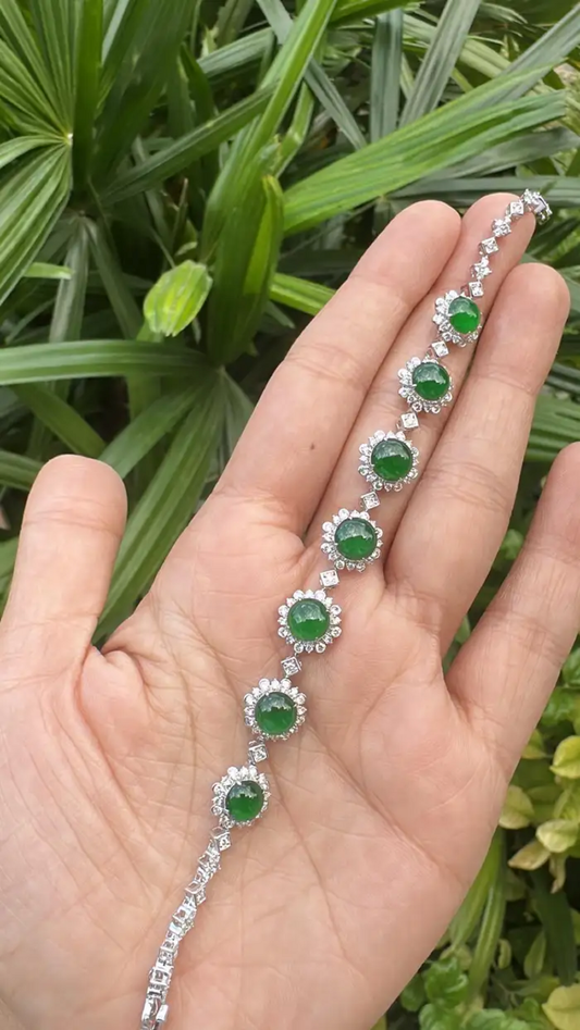 7.70 Ct. Burmese Jadeite & Diamond Bracelet - 18k White Gold Handmade Women Bracelet