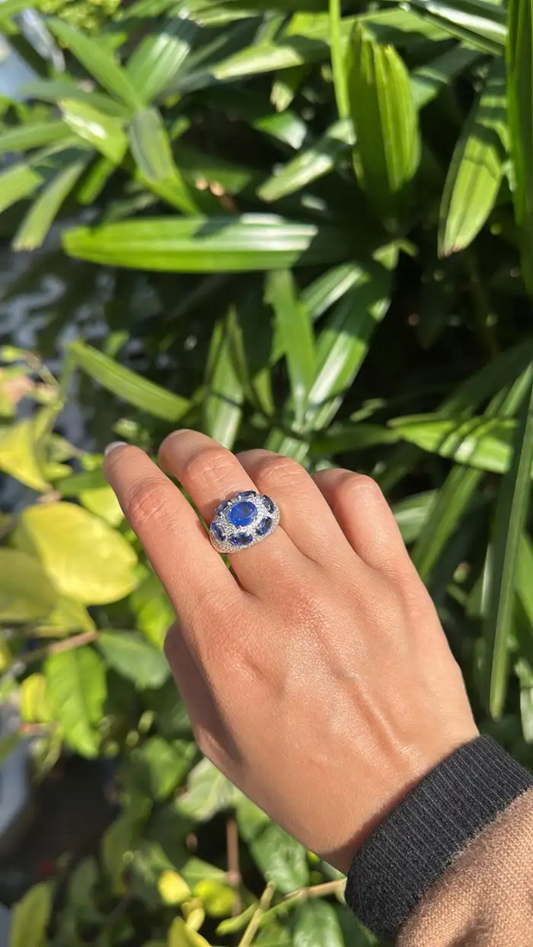 5.03 carats Ceylon Blue Sapphire Cocktail Ring - 18k White Gold Handmade Diamonds Ring