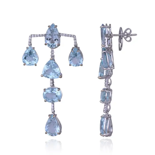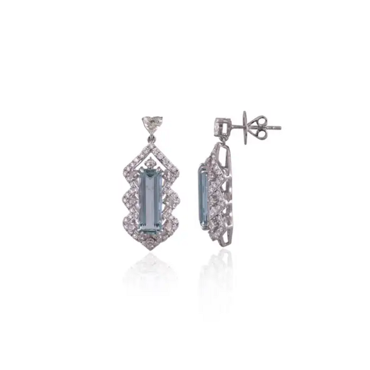 Aquamarine Gemstone Dangle Earrings - 18k White Gold Diamond Chandelier Earrings