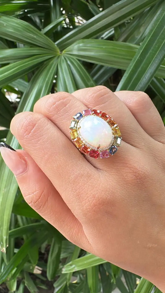 Ethiopian Opal & Multi Sapphire Cocktail Ring - 18k Gold Diamond Wedding Ring