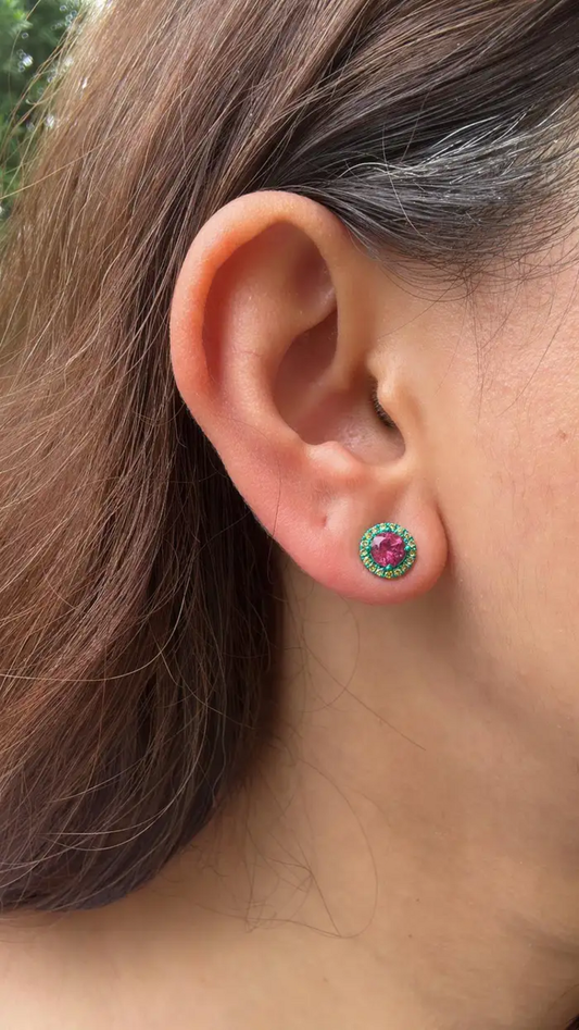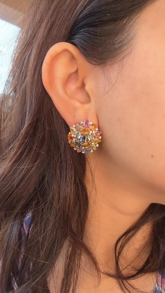 Ceylon Multi Sapphire & Diamond Stud Earrings - Handmade 18k Gold Diamond Women Earrings