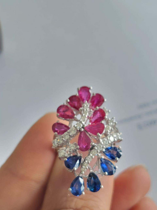 Engagement Ring in Ruby, Blue Sapphire & Diamonds / Cocktail Ring