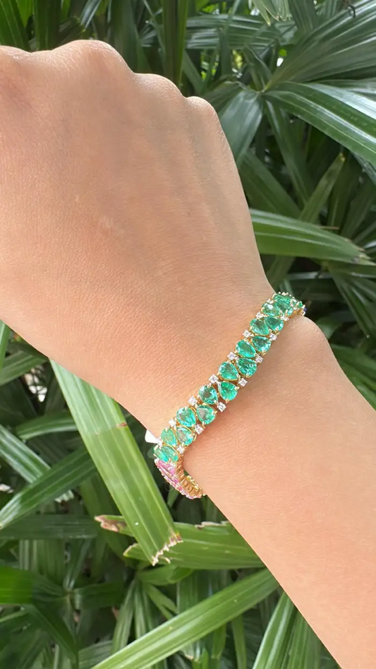 Natural Emerald, Tanzanite & Pink Sapphire Bracelet - 18k Yellow Gold Diamond Tennis Bracelet