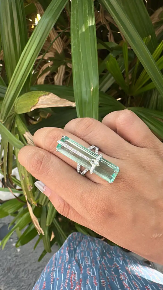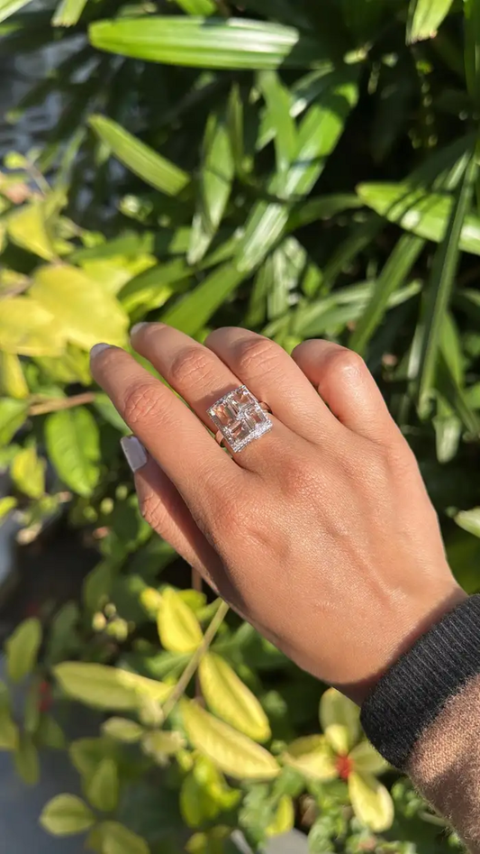 Natural Morganite Gemstone Cocktail Ring - 18k White Gold Handmade Ring With Rose Cut Diamond