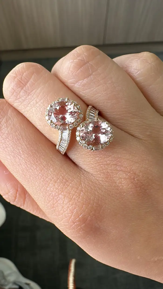 Natural Morganite & Tapered Diamond Wrap Ring - Handmade 18k Rose Gold Toi et Moi Ring