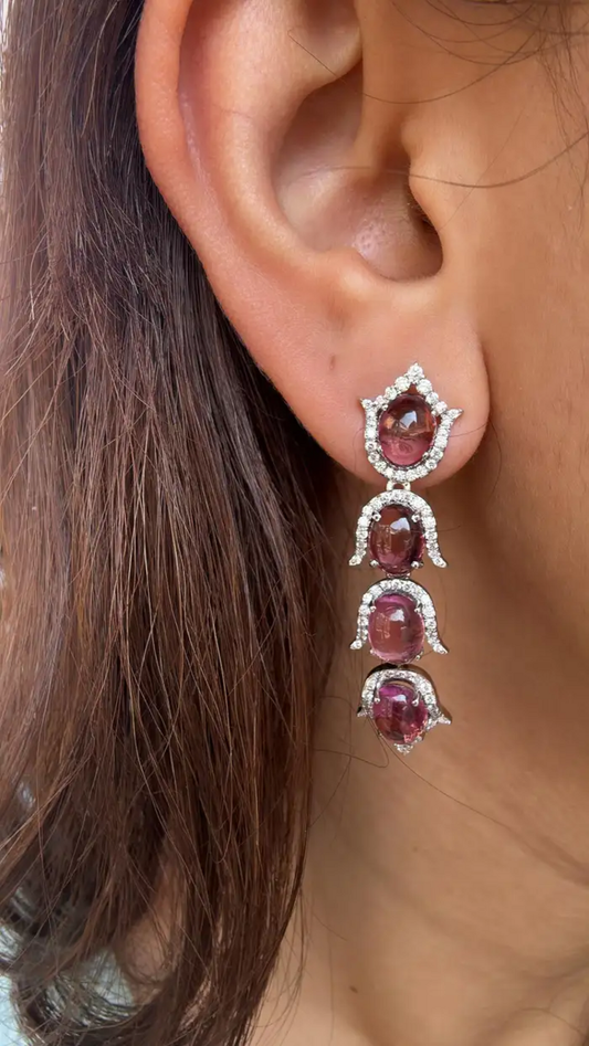 Natural Rubellite Gemstone Dangle Earrings - 18k White Gold Diamond Earrings