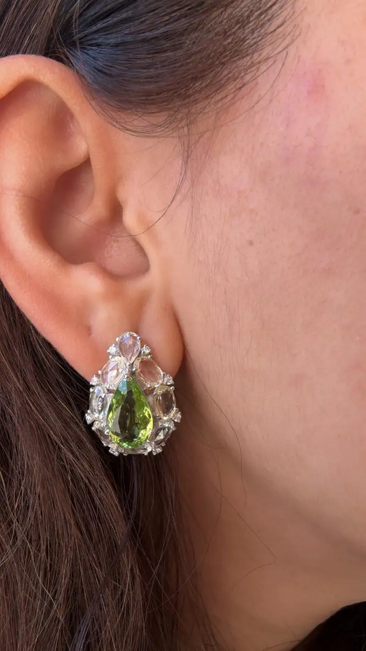 Natural Pear Shape Tourmaline & White Sapphire Stud Earrings - 18k White Gold Diamond Earrings