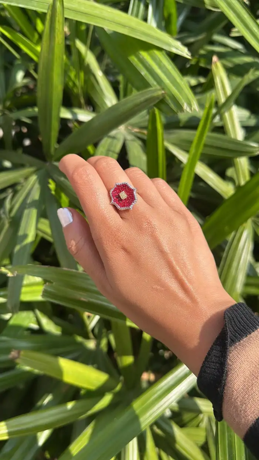 Natural Ruby & Yellow Diamond Ring - 18k White Gold Diamond Stackable Wedding Ring