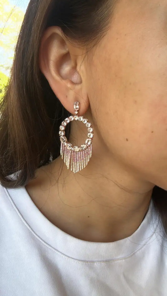 Natural Pink Sapphire & Morganite Gemstone Chandelier Earrings - 18k Rose Gold Diamond Earrings