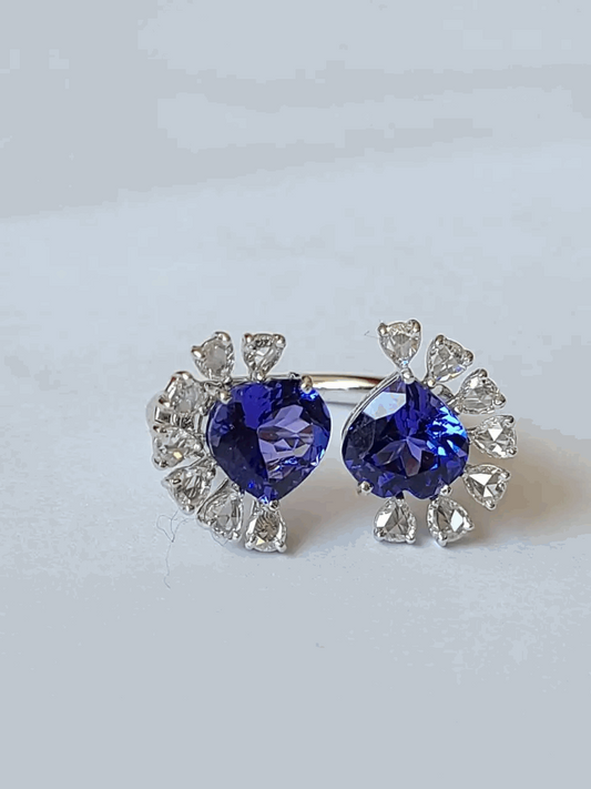 Tanzanite Set in 18K White Gold & Rose Cut Diamonds Cocktail/ Engagement Ring