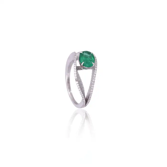 18k White Gold Diamond & Zambian Emerald Engagement Ring