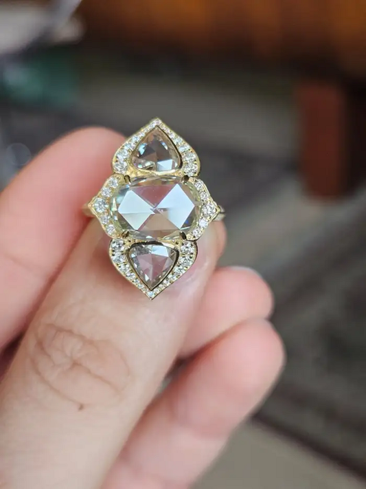 18k White Gold Art Deco Style Ring - Natural Rose Cut Diamond Engagement Ring