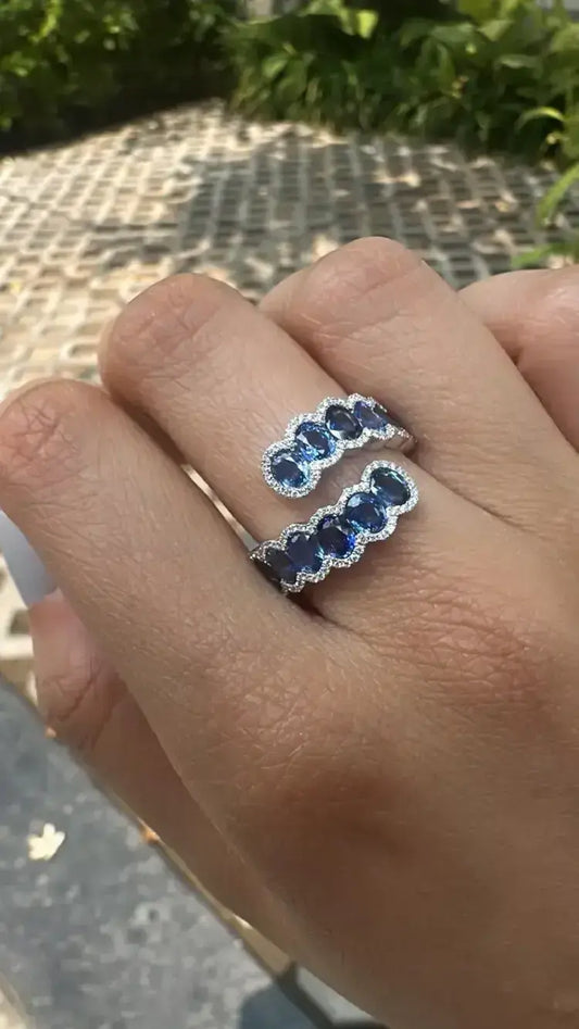 18k White Gold Rose Cut Diamond Ring - Natural Multi Sapphire Wedding Ring