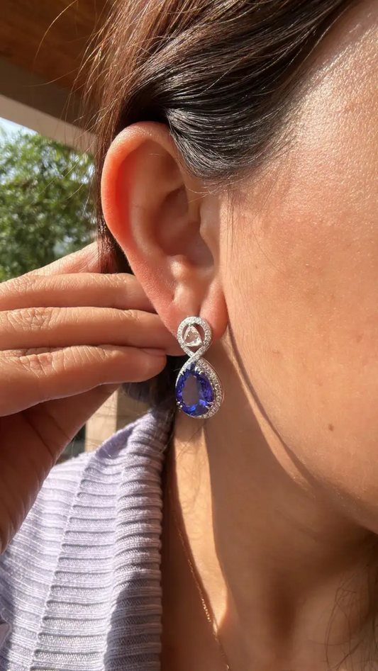18k White Gold Handmade Rose Cut Diamond Earrings - Natural Tanzanite Gemstone Earrings - Best Anniversary Gift