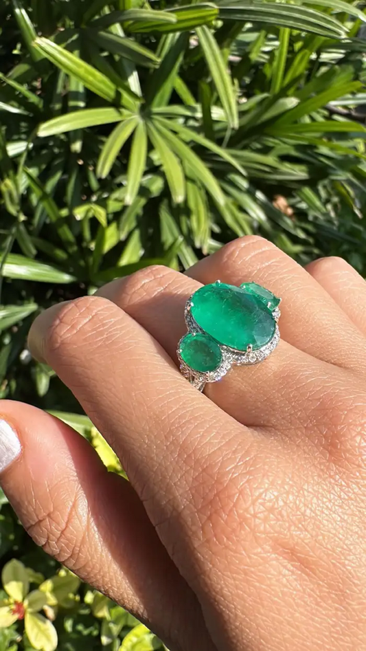 18k White Gold Handmade Ring - Natural Zambian Emerald & Diamond Wedding Ring