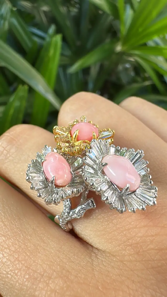18k White Gold Tapered Diamonds Cocktail Ring - 3.93 Ct. Conch Pearls Wedding Ring