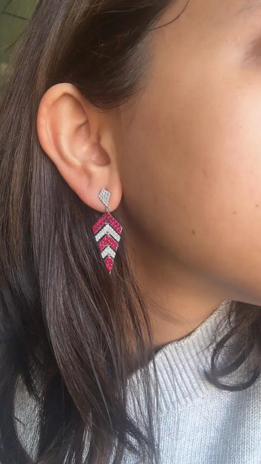 2.18 Ct. Mozambique Ruby & Diamond Earrings - 18k White Gold Handmade Chandelier Earrings