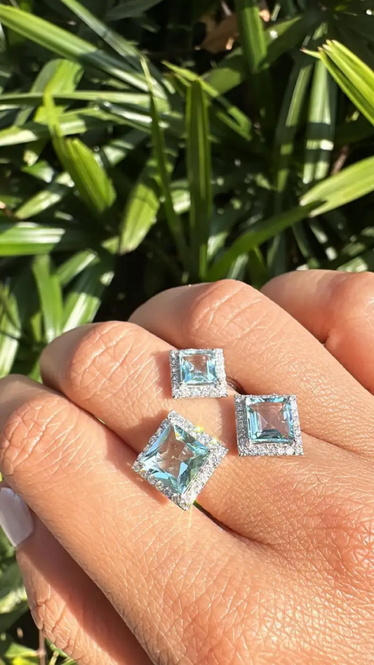 3.80 Ct. Aquamarine Gemstone Three Stone Cocktail Ring - 18k White Gold Diamond Ring