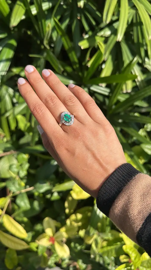 2.14 Ct. Zambian Emerald Engagement Ring - 18k White Gold Handmade Diamond Ring