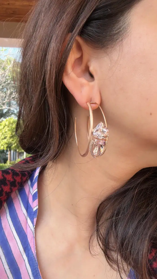 18k Yellow Matte Gold Hoop Earrings - Natural Morganite & Diamond Earrings