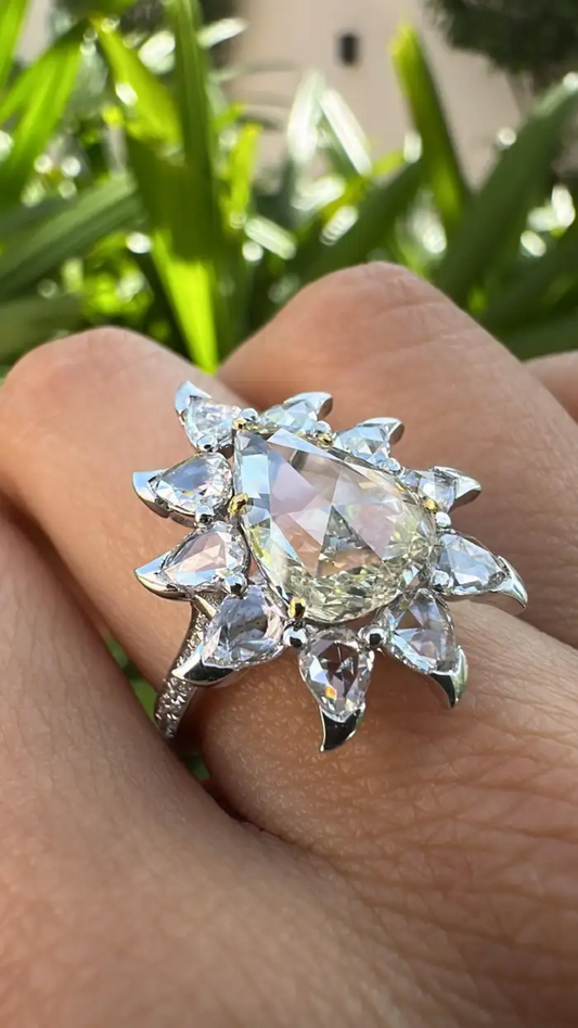 3.86 Ct. Rose Cut Diamonds Engagement Ring - 18k White Gold Handmade Wedding Ring
