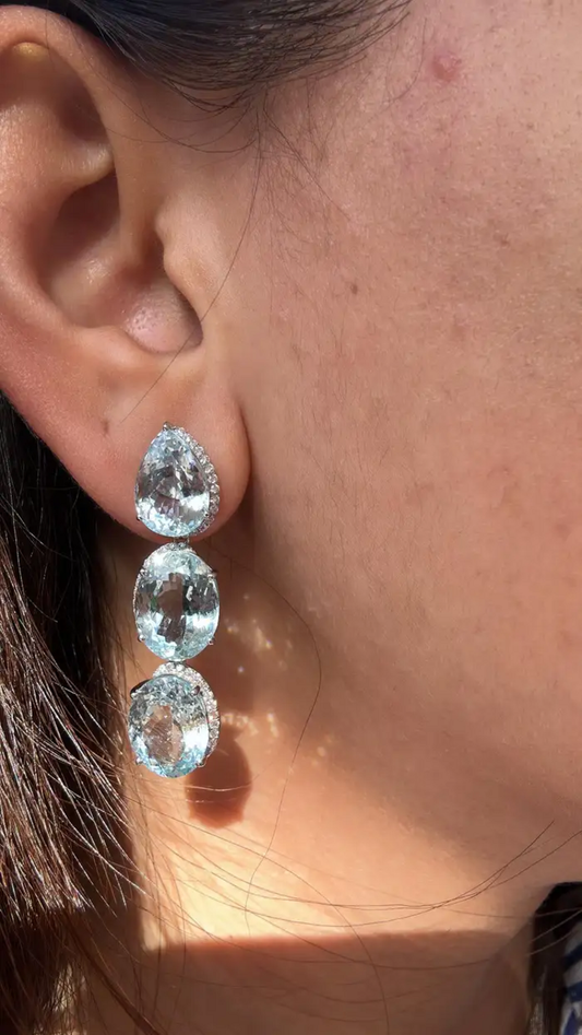 21.40 Ct. Aquamarine Dangle Earrings - 18k White Gold Diamond Earrings