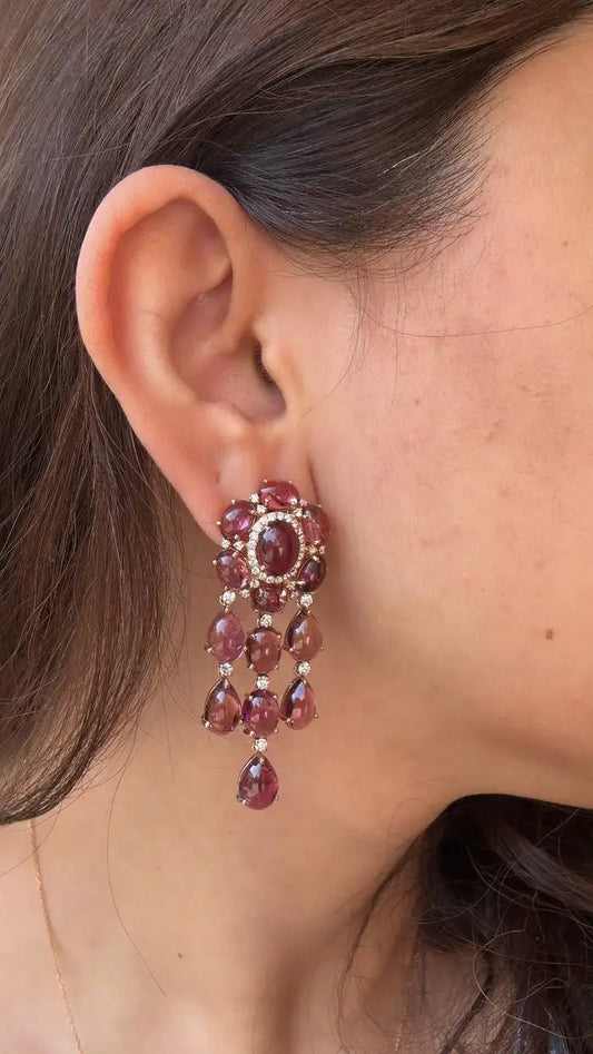 39.21 Ct. Cabochon Tourmaline Gemstone Dangle Earrings - 18k Rose Gold Diamond Wedding Earrings