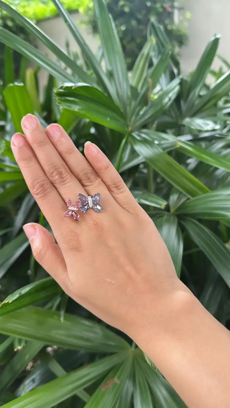 18k Gold Diamond Engagement Ring - Natural Ceylon Pink & Blue Sapphire Stackable Ring