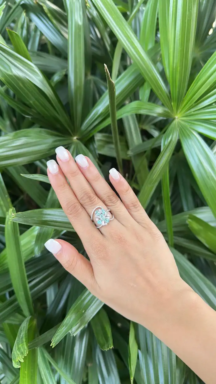 18k White Gold Diamond Engagement Ring - Natural Paraiba Tourmaline Ring